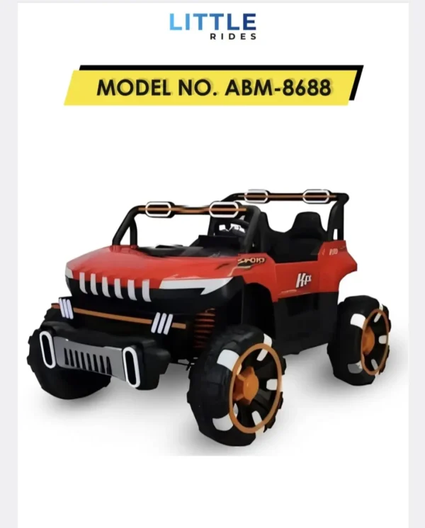The Little Rides ABM-8688 is a rugged and stylish battery-operated ride-on jeep for kids. With its off-road look, smooth drive, and entertaining features, it’s perfect for adventure-loving children aged 3 to 8 years.
